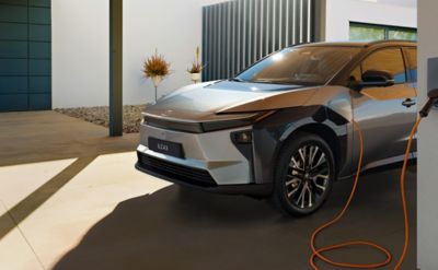 ◊ Een geëlektrificeerde auto is een auto die in zekere mate wordt aangedreven door één of meer elektromotoren. Sommige geëlektrificeerde auto's, waaronder hybrides en plug-inhybrides, hebben ook een benzinemotor. Andere, zoals de Toyota bZ4X, zijn volledig elektrisch